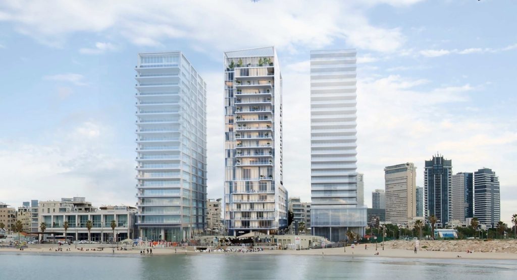 מתחם של 2 מגדלים על קו החוף ברחוב הרברט סמואל בתל אביב מצפון לגן צ'רלס קלור.